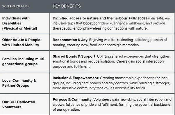 DELIVER, SAFE, DIGNIFIED, ACCESSIBLE BOAT TRIPS